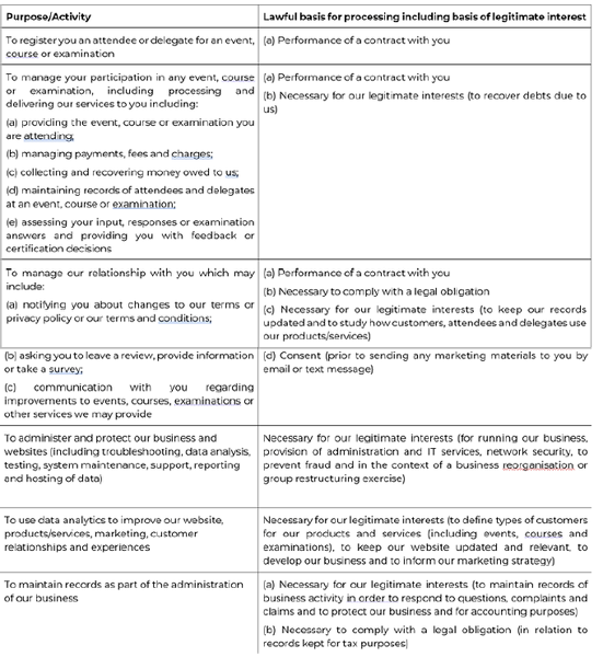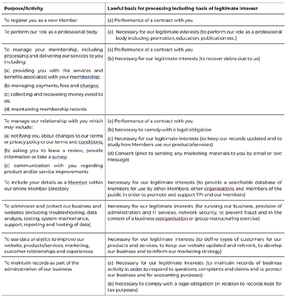 TPI will collect and use personal information relating to Professional Members,