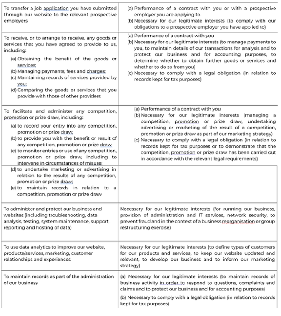 The personal information we collect and use in the performance of our role, we